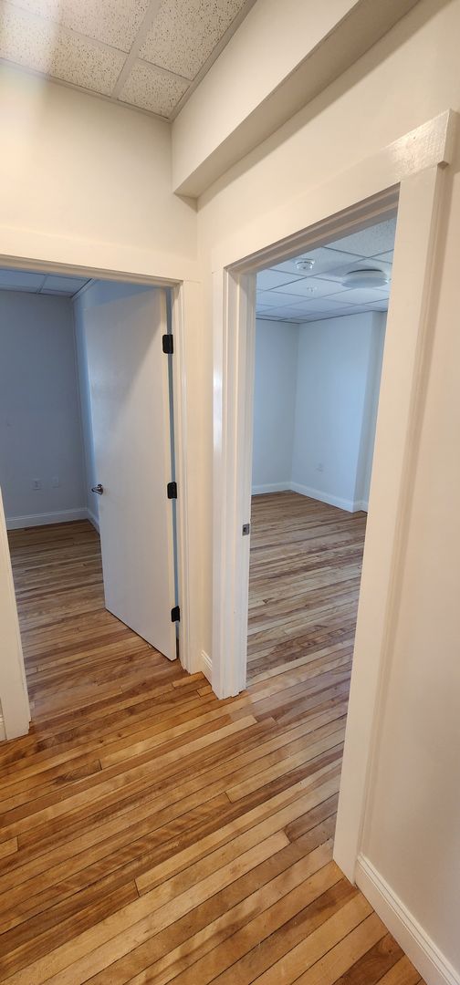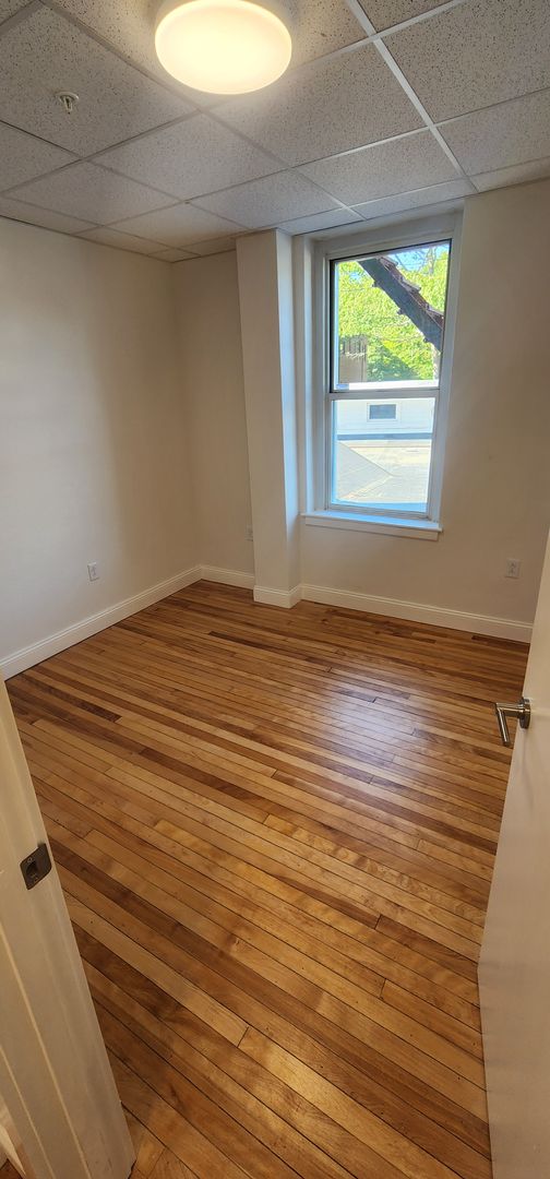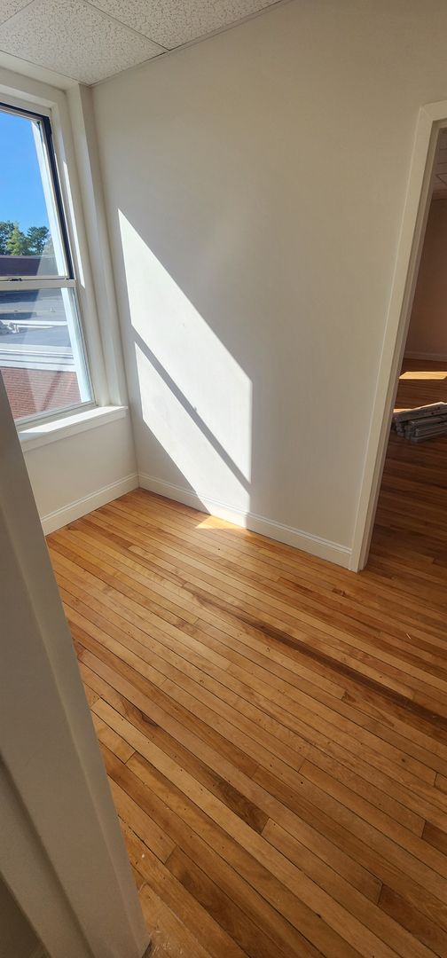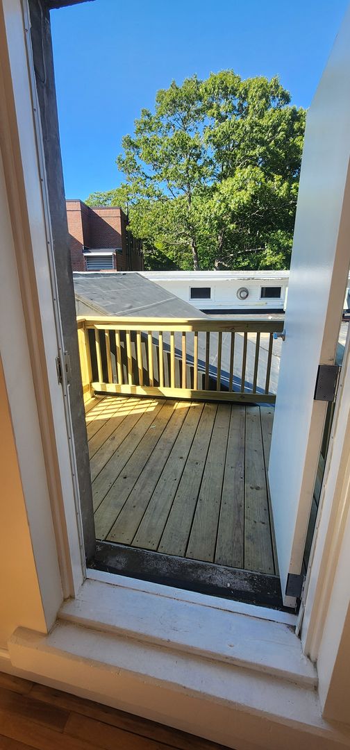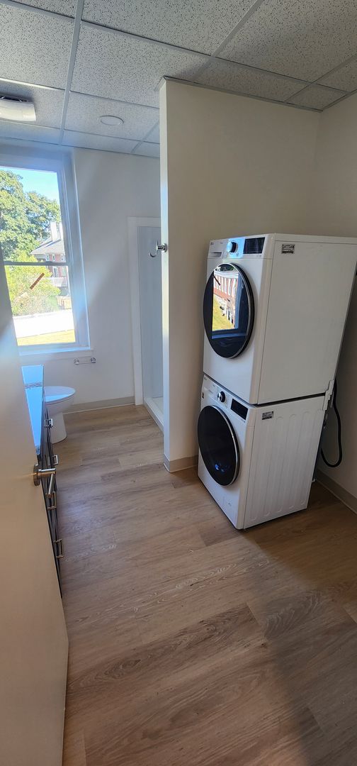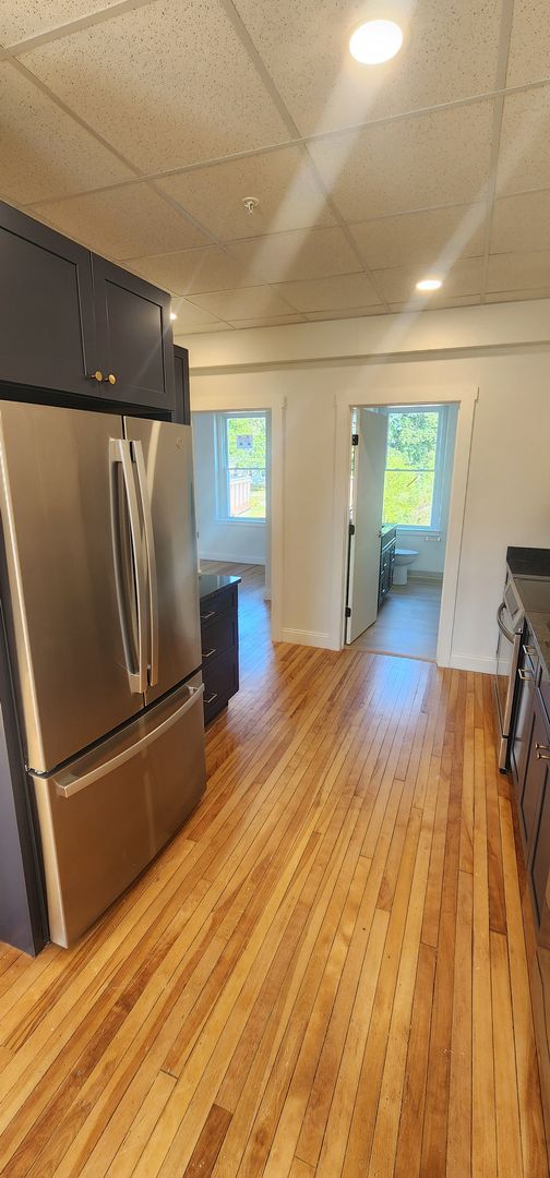 Beautiful newly constructed 2nd floor 2 bedroom apartment in former hospital in Bath. This apartment features custom kitchen with stainless steel appliances; beautifully restored hardwood floors; in-unit laundry, a spacious mudroom/entryway and a private rooftop deck.