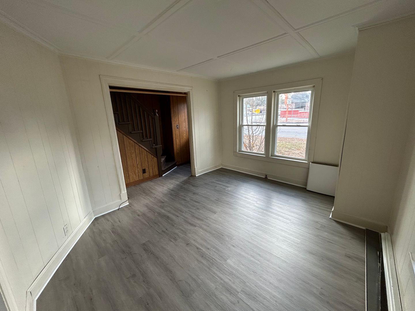 Full house rental available in Brunswick! Four bedroom, one bathroom house for rent in convenient Brunswick location. This large house has 2 living levels and a full basement with a lot of extra space, several off-street parking areas, and large backyard with a view of the woods. Brand new vinyl flooring on main floor and newly refinished wood floors upstairs. Efficient heat pumps and wall mounted electric heat keep electric bills low. Tenant responsible for electricity, lawn care, and snow removal. Minimum qualifications include a credit score of around 650 and the ability to provide proof of 3x income to rent per month.