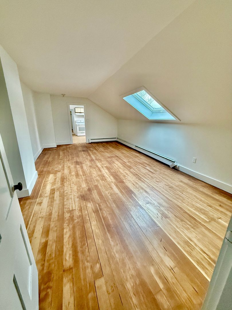 New Listing! Large 2+ room studio apartment features newly refinished hardwood floors, a skylight, storage and fresh paint.