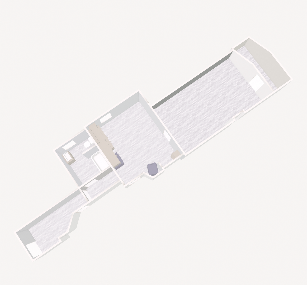 A good sized entry/hallway leads to a spacious eat in kitchen. Large room, off of the kitchen can function as a bedroom/living room combo. This room has additional light from the skylight and a generous closet space.