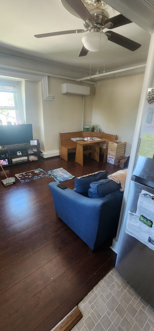 3rd Floor 1 bedroom apartment in downtown Brunswick with in-unit laundry and 1 off street parking space. Open concept kitchen/living room. Tenant pays for electricity (apartment is heated and cooled by electric heat pump) and cable/internet, landlord pays for water/sewer.
