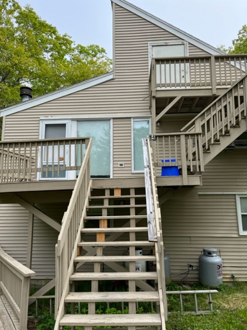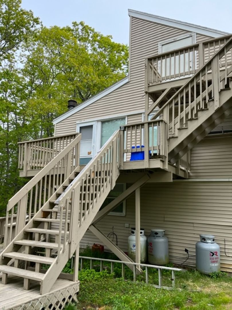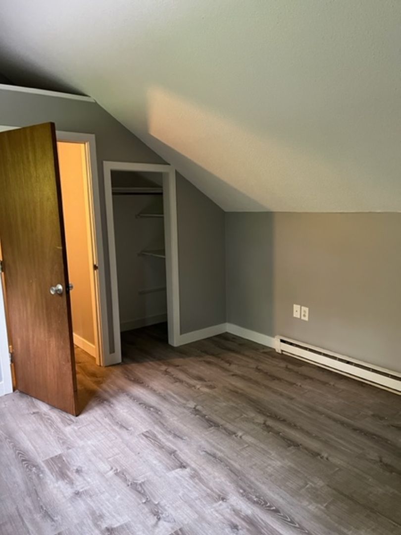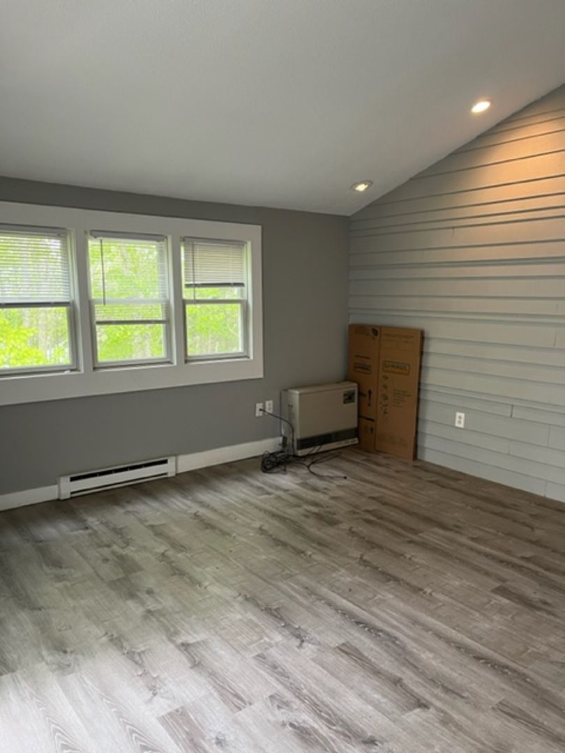 Recently remodeled second/third floor 2 bedroom 1 bathroom apartment for rent in West Bath. This apartment has newer floors and will have fresh paint. Main floor (2nd) has large living/dining room; galley style kitchen with dishwasher; bathroom and bedroom. Additional bedroom is on the 3rd floor and can be accessed internally by ship ladder style stairs or by external staircase from the deck. Minimum requirements include a credit score of around 650 and the ability to provide proof of 2.5-3x income to rent per month. Property has off street parking. Tenant pays for heat/electric. Owner pays for plowing/landscaping, sewer/water