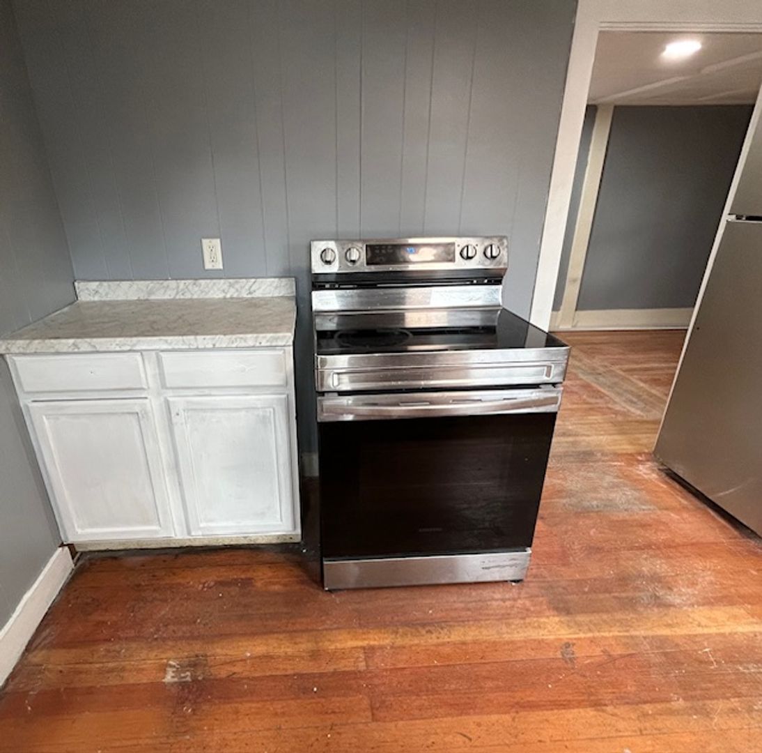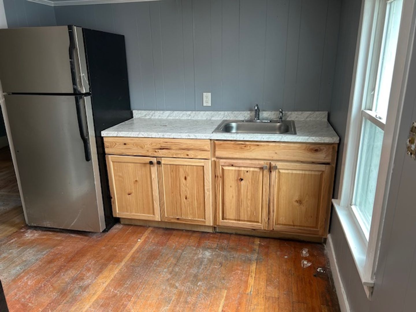 Whole house rental in Brunswick - 3 bedroom, 1 bathroom home with laundry. Top floor features an older kitchen, small living room, bathroom and bedroom. Downstairs are 2 large bedrooms and laundry. Off-street parking on-site. Landlord pays for water/sewer, snow removal and landscaping.