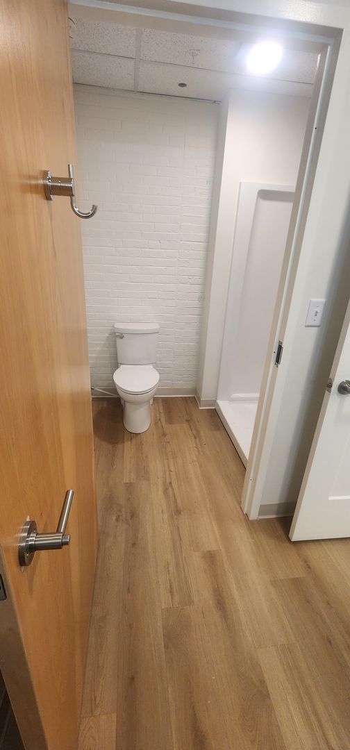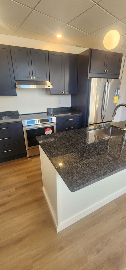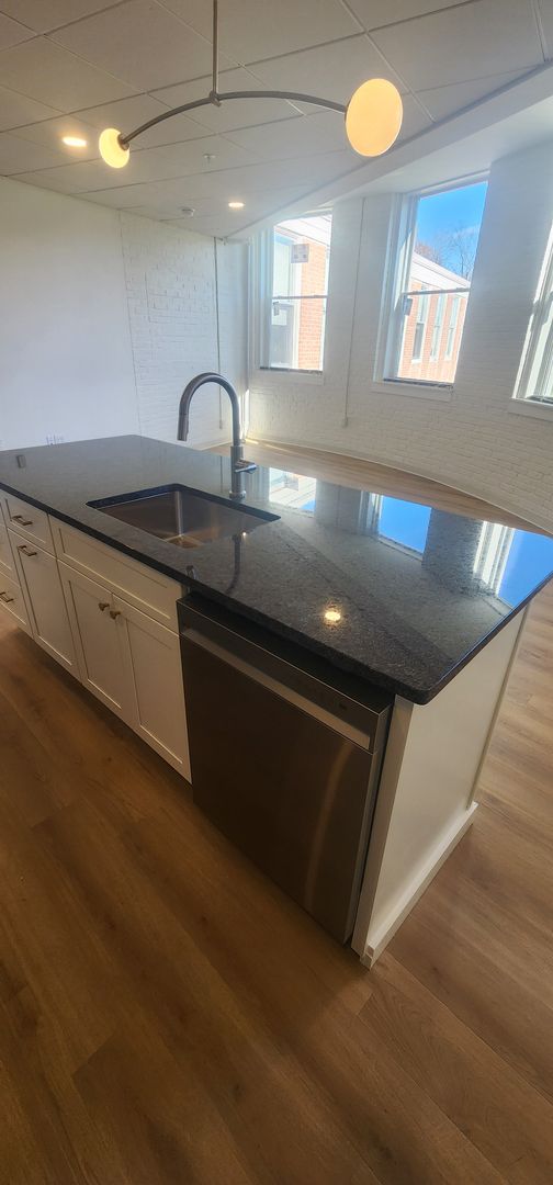 Brand new 2-bedroom apartment with study in renovated former hospital. Modern feel while keeping many original features. Brand new kitchen with custom cabinets; induction cooktop and dishwasher. New flooring throughout. 2 Spacious bedrooms plus smaller bonus room that could be a 3rd bedroom, office or den.