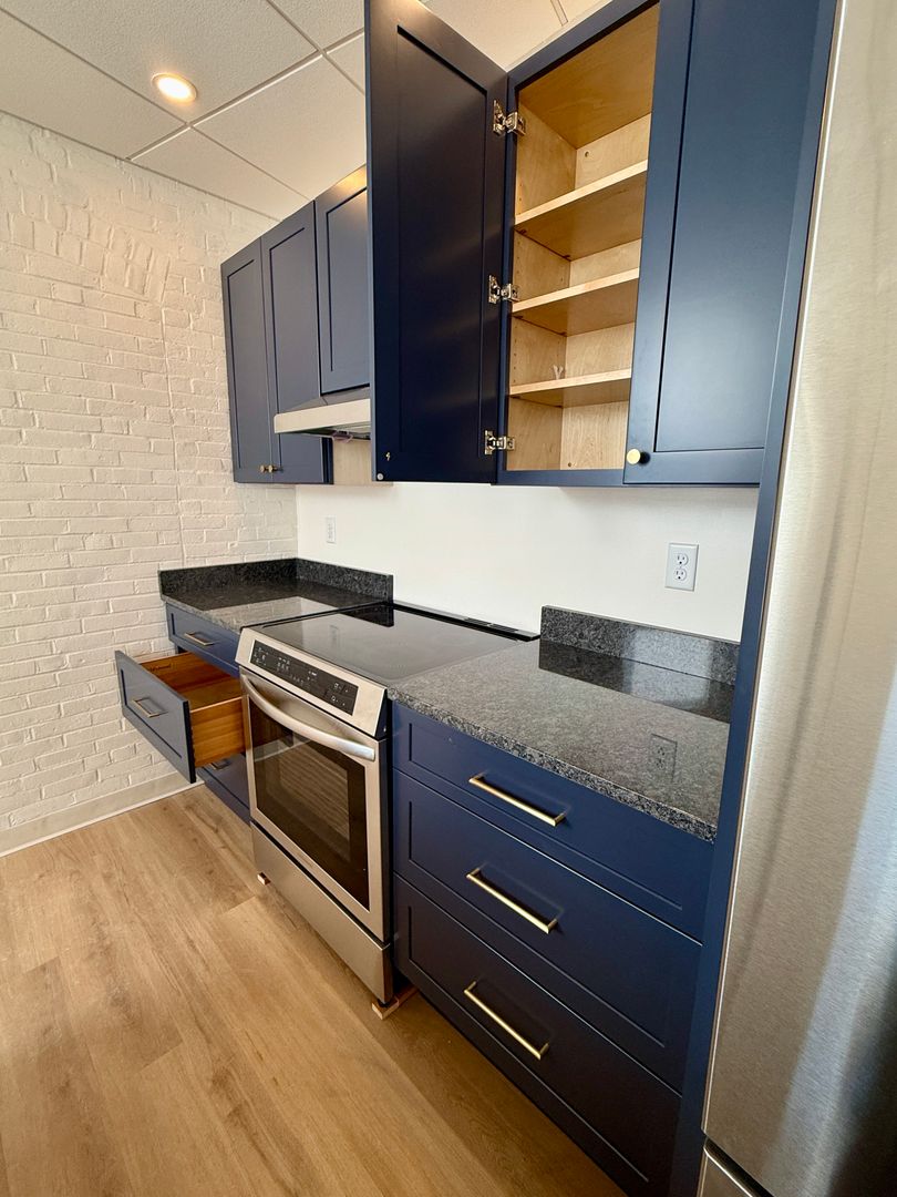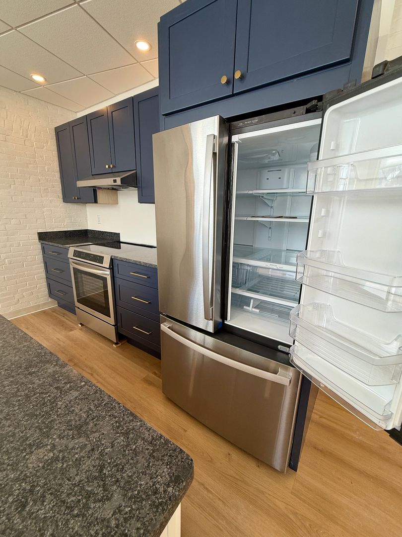 The brand-new open kitchen features a center island, custom cabinetry, an induction range, a French-door refrigerator, and a dishwasher- perfect for everyday living and entertaining. A bright, open living and dining area provides a comfortable space to relax or host guests.