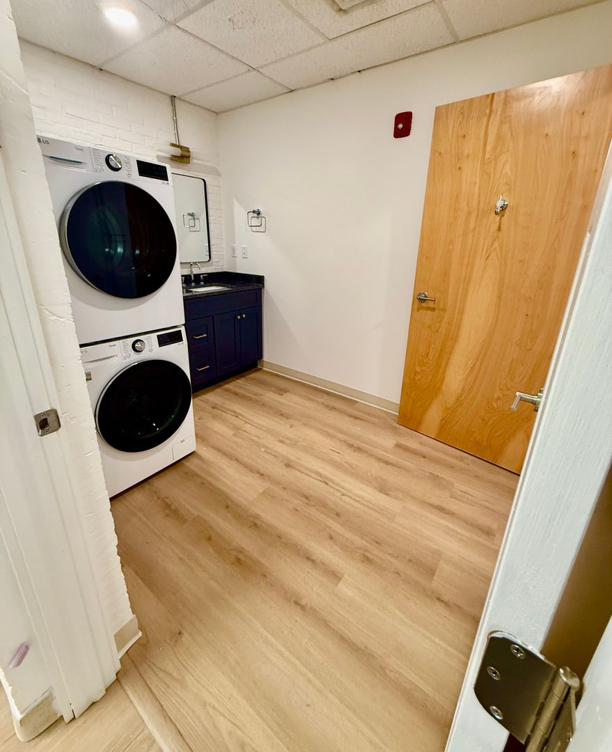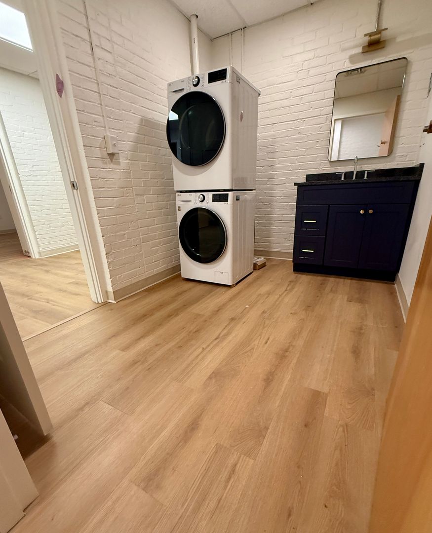 Additional highlights include new flooring throughout and a full-size washer and dryer conveniently located in the unit.