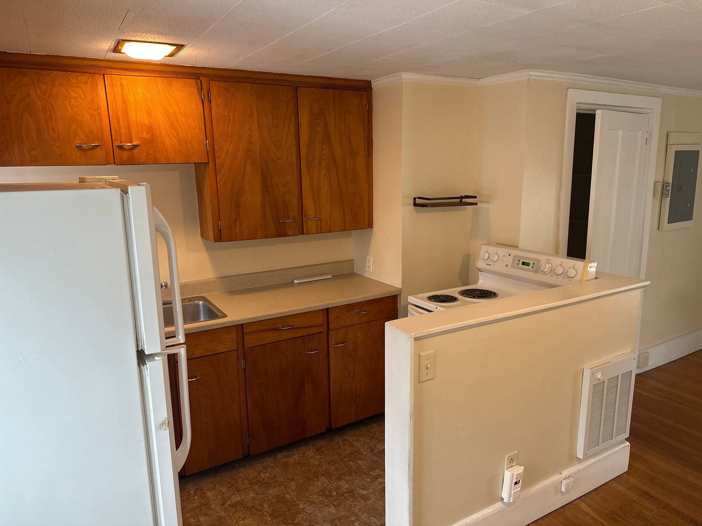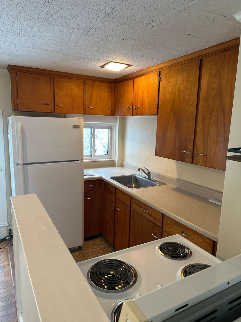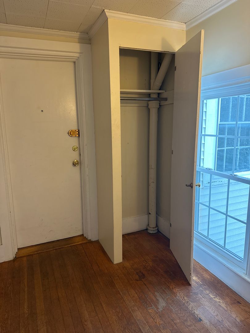 New windows let the sunshine in! Nice large two room studio apartment located in Bath Maine. Entry room is large enough for a small sitting area, desk or table. Larger room features the kitchen in one corner. Close to everything, this unit has full size appliances, bathtub and closet storage. One off street parking spot included. Coin Op laundry facilities in building and quiet neighborhood for you to call home. Requires 1 year lease, a credit score of approximately 650 and 2.5-3X the rent in monthly income.